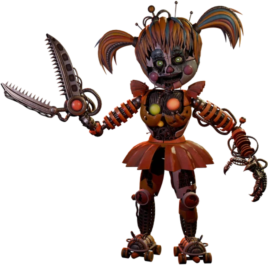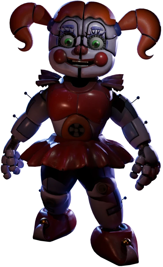 She is an animatronic clown that serves as the titular mascot of the Circus Baby's Entertainment & Rental service and leader of the Funtime Animatronics. In reality, Baby is possessed by the spirit of Elizabeth Afton, the daughter of William Afton and the sister of Michael Afton and the Crying Child, who was accidentally killed by Baby in a freak accident. To escape the facility she was contained in, she would merge with the other animatronics into a hybrid called Ennard, she was eventually ejected by the others due to her controlling nature and repaired herself, becoming Scrap Baby. She was later burned to death in Freddy Fazbear's Pizza Place by Henry Emily, setting Elizabeth's soul free.