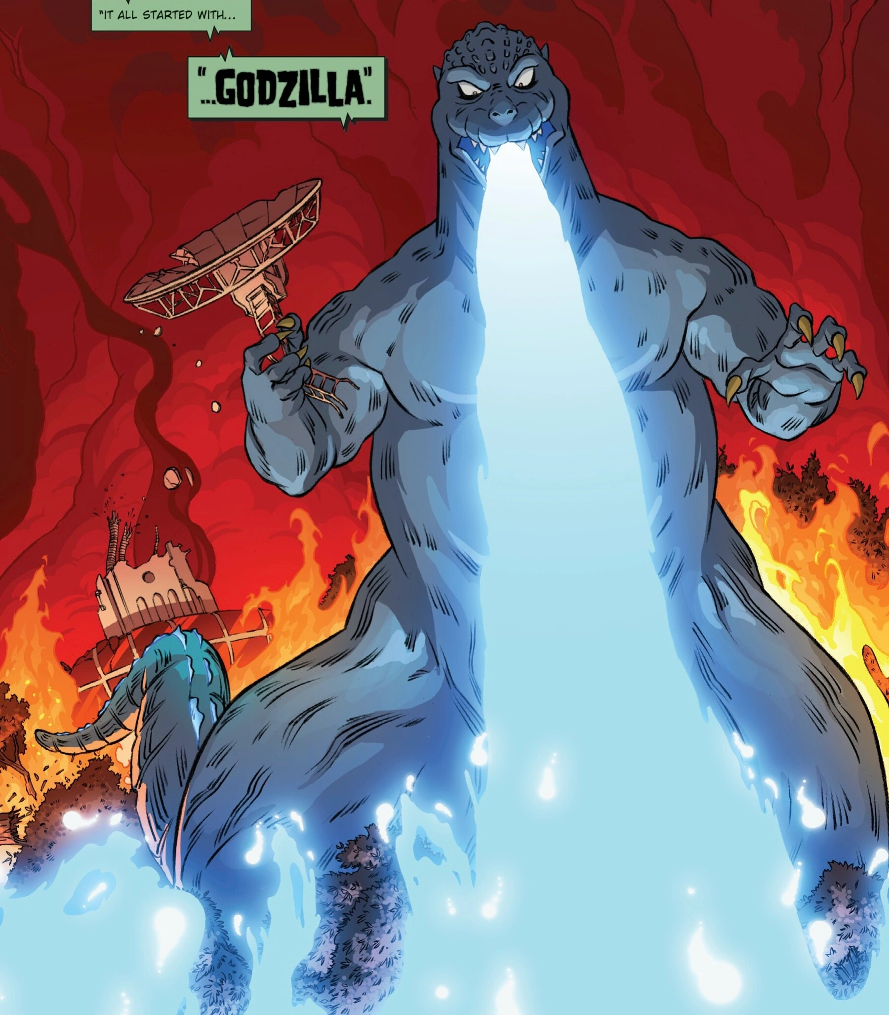 - He would reach his mortal event horizon after getting fed up with mankind harming the environment by charging up a supercharged atomic breath to wipe out all of mankind by blocking out the sun, which would've made them humankind froze to death if he didn't got talked out by the comic’s three human protagonists Cedric Nishimura, Emily Hill, and Anderson Scott who the Shobijin's help telepathically talk to him to show him the good in humanity making him give humankind one more generation to reverse the damage.